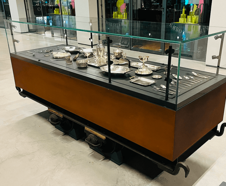 Mobile display cases on trolleys